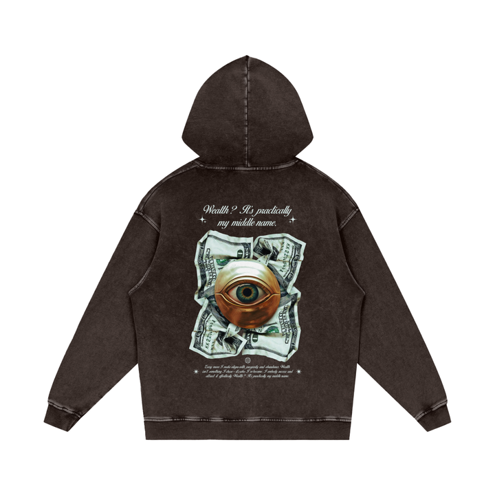 Wealth Its Practically My Middle Name Snow Washed Loose Cotton Hoodie